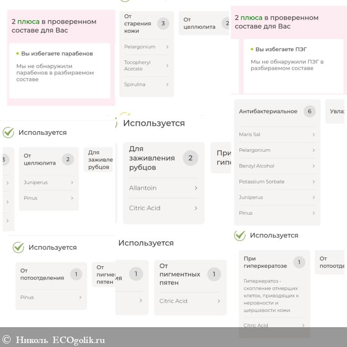 Подписка PLUS выделила для меня 2 плюса, показала, для каких целей используются те или иные компоненты, провела анализ ингредиентов по косметическому действию.