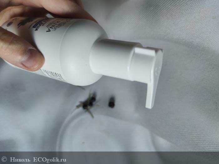 Дозатор работает идеально, выдает плавно небольшую порцию геля. Средство в отверстии дозатора не засыхает.