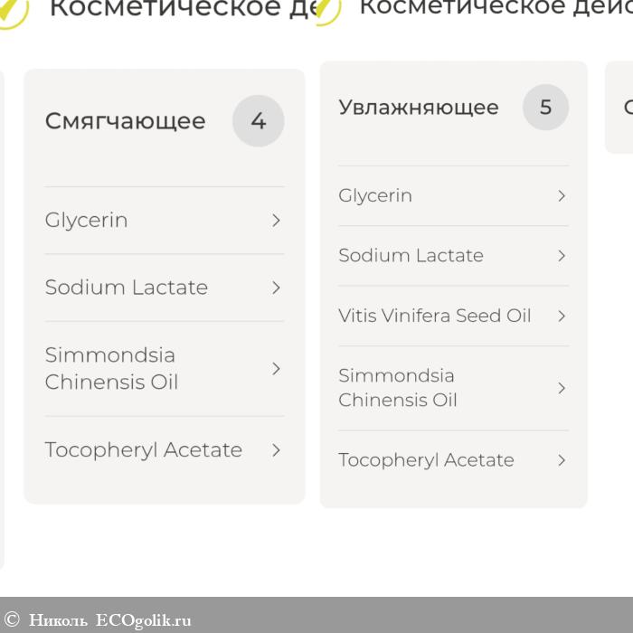 Подписка PLUS выделила для меня 2 плюса, показала, для каких целей используются те или иные компоненты, провела анализ ингредиентов по косметическому действию.