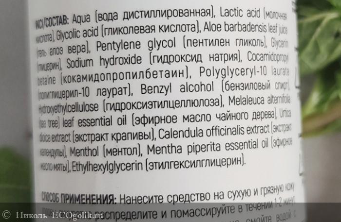 Быстро и удобно с помощью носика распределяется по проборам. Не течёт. С лёгкостью смывается. После смывания пилинга, ощущение холодка чувствуется ещё несколько минут. Охлаждающий эффект тут насыщенный, проявлен ярко за счёт ментола и эфирного масла мяты в составе.