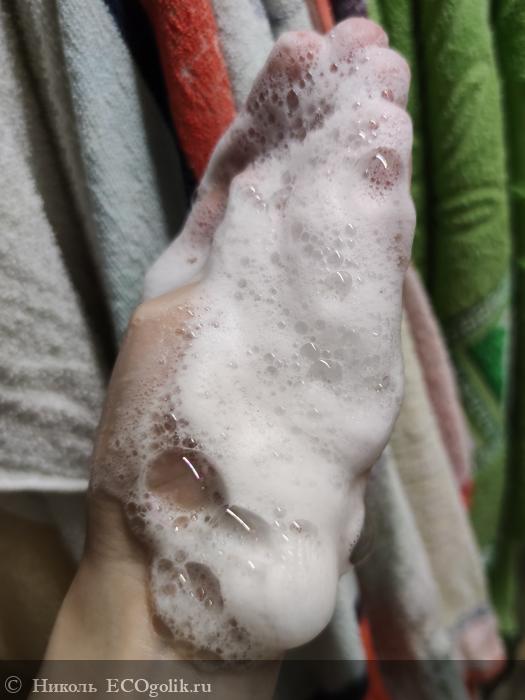 - Хорошо пенится за счёт таких ПАВ, как: кокосульфат натрия, кокамидопропилбетаин, изетионат натрия, кокоглюкозид, децил глюкозид.