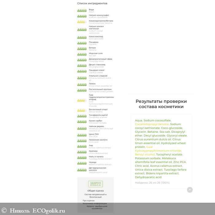 Состав почти такой же, как и у шампуня из линейки GIRL, только тут ещё есть эфирные масла апельсина, лимона, чайного дерева.