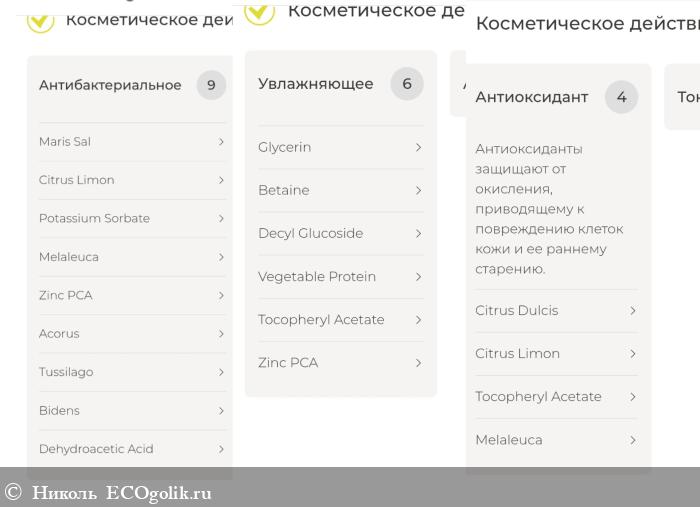 В описании расписаны действия нескольких компонентов, входящих в состав этого средства. В описании опечатка, в составе эфирное масло чайного дерева, а не эвкалипта.