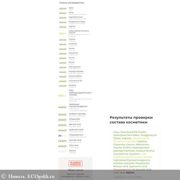Начну свой рассказ о том, что я не ставила никаких ожиданий себе, я не падкая на красивые обещания, речи. Но многие хвалили это средство, хоть и есть компонент двоечник в составе - поликватерниум-10. Я предполагала, что этот уходовый продукт может мне не подойти, ибо моя интуиция не подводит, но никак не ждала такого эффекта. Мне всегда хотелось попробовать "жидкий шёлк" от Jurassic Spa, но меня вечно что-то останавлило от покупки и постоянно что-то смущало, поэтому откладывала её приобретение. И тут достался мне пробник при покупке с маркетплейса "маникюра для волос".