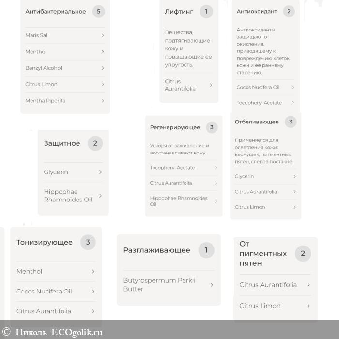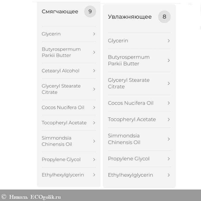 Прикреплю разбор компонентов по косметическому действию. Он богат на увлажняющие и смягчающие ингредиенты.
