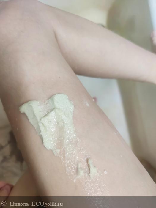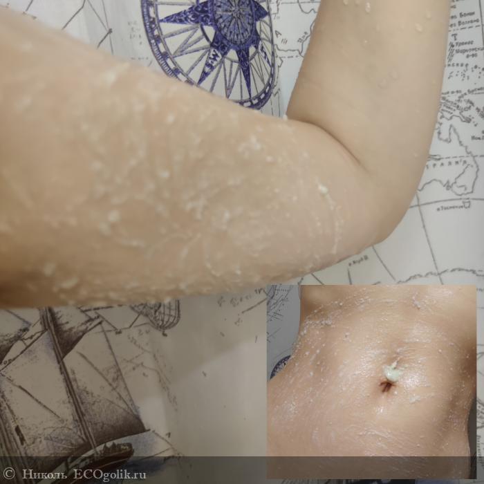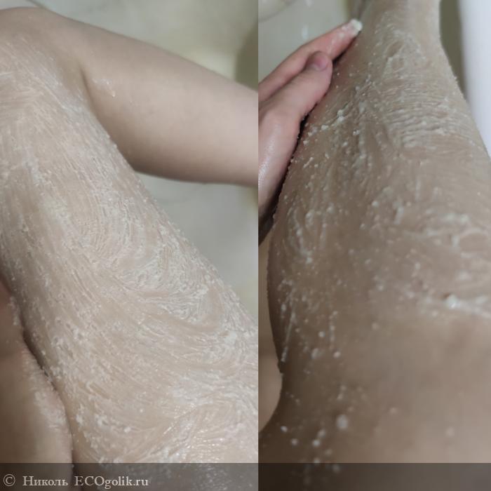 Чаще всего я наносила скраб на ножки, но пробовала так же на ручки и животик.
