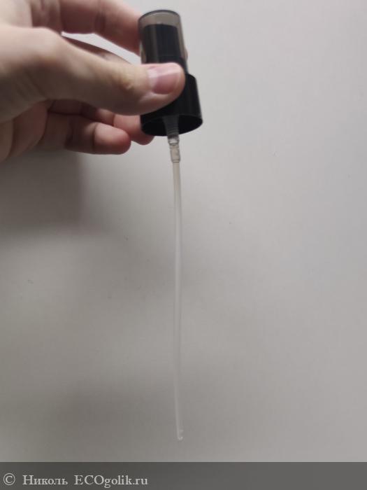 Флакончик оснащён удобным дозатором - распылителем высокого качества. Он закрывается затемнённой крышечкой.