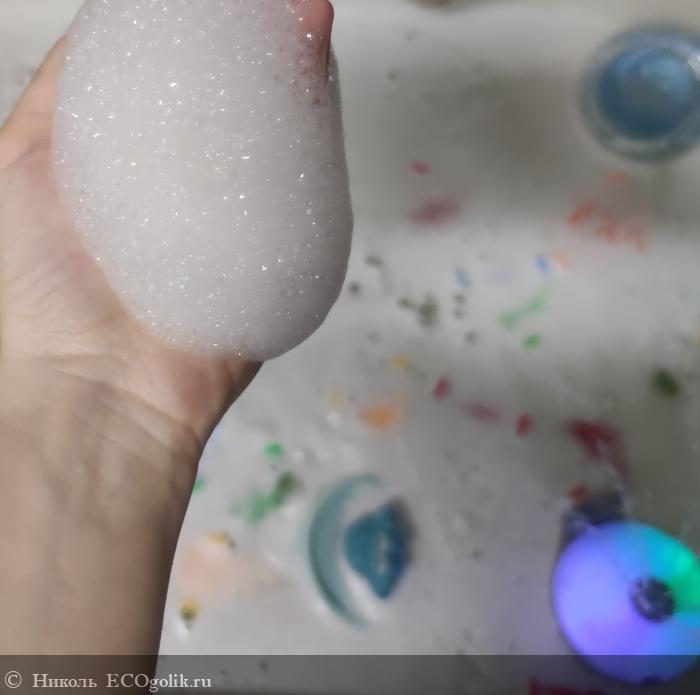 - Можно использовать для мытья волос, подмывания и очищения всего тела. А ещё можно использовать, как пенку для ванны. Сняв дозатор, налив чуть в ванну этого уходового продукта, и бух, ребенок готов плескаться в пенке. (На фото тут уже пенка осела, прошло несколько минут после купания в ванне.