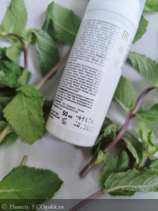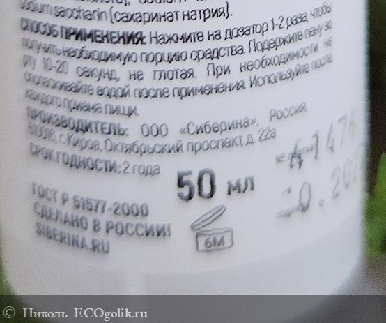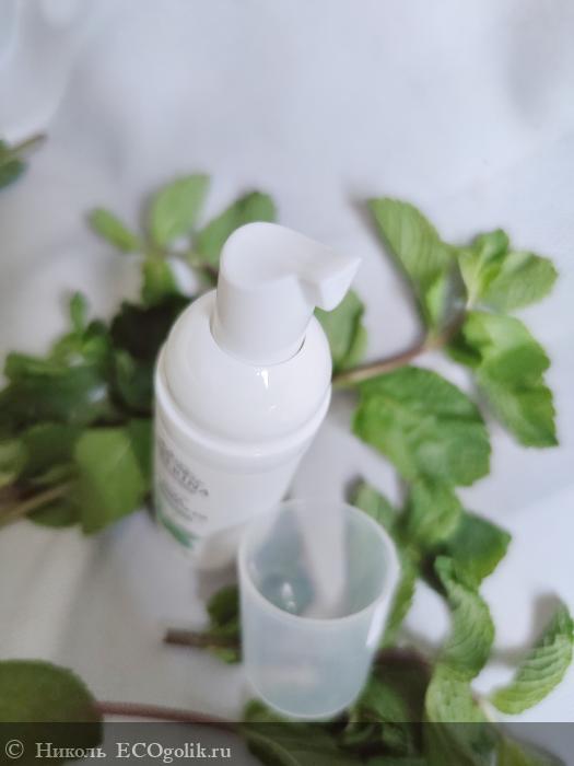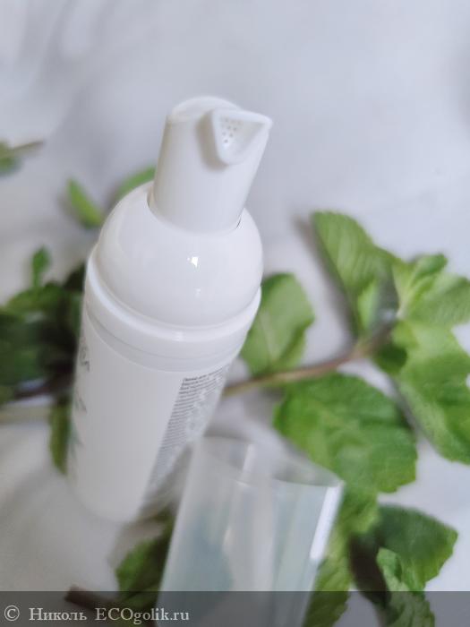 Пенка хранится в пластиковом флакончике белого цвета в объёме 50 мл. На флакон наклеена влагоустойчивая наклейка со всей информацией о ней с изображением листочков мяты. Дизайн этикетки выполнен в стиле минимализма и подчёркивает натуральность этого средства.