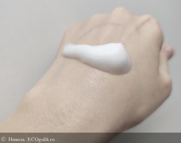 Несмотря на свою лёгкость, воздушность, пенка достаточно упругая, сразу не опадает. Пенка образуется за счёт такого ПАВ, как кокосульфат натрия.