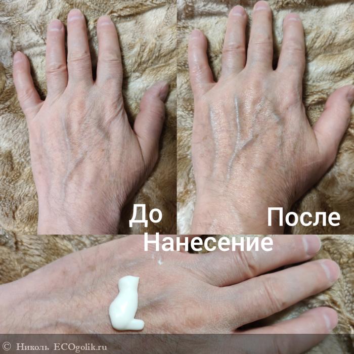 густой, белого цвета кремовой текстуры. Это средство не течет, не растекается, создаёт невесомую, питательную вуаль на коже. Он легко распределяется по коже и относительно быстро впитывается в неё, в течение 10 минут. Крем мощный, он богат на полезные компоненты в составе, наносить много его не нужно. Расходуется экономично.