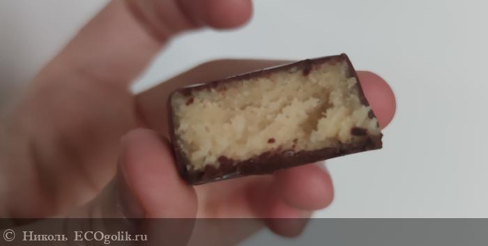 И кокосовый. Ну, тут вообще восторг. Миндально-кокосовый вкус. Кокосовая стружка не застревает в зубах. Кокосовый вкус тут насыщенный.