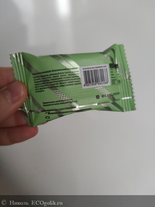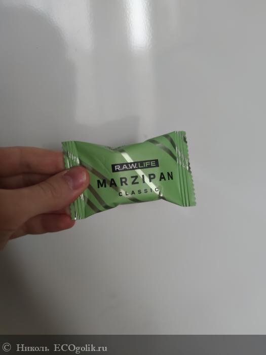 Классический марципан в зелёной обёртке. Сам дизайн марципановых конфет минималистичный.