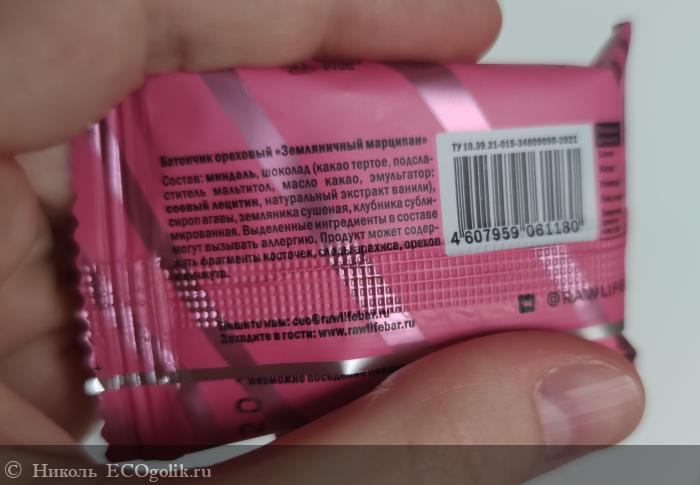 Состав чистый: Миндаль, шоколад (какао тертое, мальтитол, масло какао, эмульгатор: соевый лецитин, натуральный экстракт ванили), сироп агавы, земляника сушеная, клубника сублимированная.