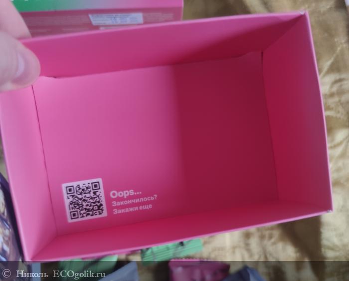 После этого на дне коробочки можно заметить надписи, такие как:" упс, закончились? Закажи ещё" и qr-код.