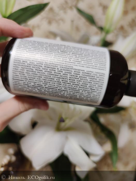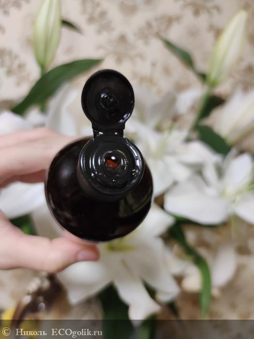 Шампунь хранится в тёмно-коричневом флаконе, изготовленным из полиэтилентерефталата, в объёме 250 мл. На флакончике имеется влагоустойчивая наклейка белого цвета со всей информацией про него. Дизайн флакона красивый, стильный, минималистичный, не вызывает визуального шума.