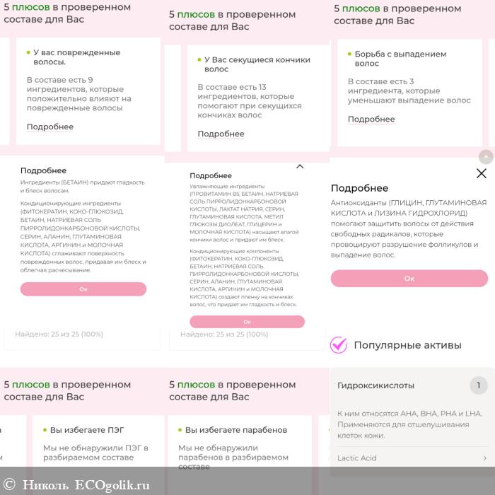 Подписка PLUS выделила мне множество плюсов, подчеркнув популярный актив, написала для каких целей используются некоторые компоненты, а так же произвела анализ ингредиентов по косметическому действию.