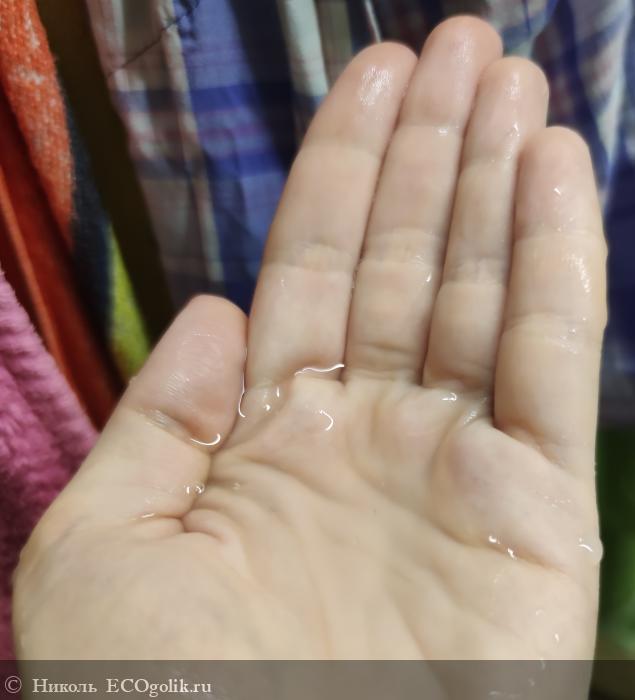 Консистенция у шампуня жидкая, гелевая, текучая, прозрачная.