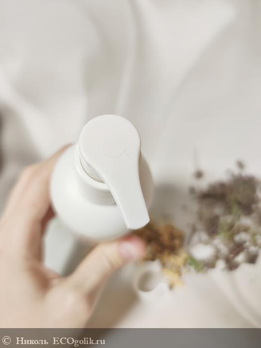 Флакончик оснащён удобным помповым дозатором высокого качества, который осуществляет плавное, мягкое дозирование шампуня, выдавая его небольшое количество без плевков. В отверстии дозатора шампунь не засыхает.