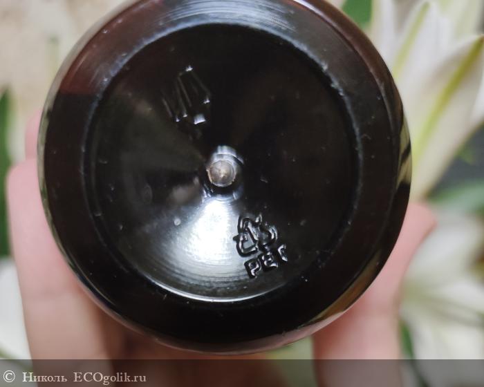 Знак переработки указан на дне флакона, флакончик сделан из полиэтилентерефталата.
