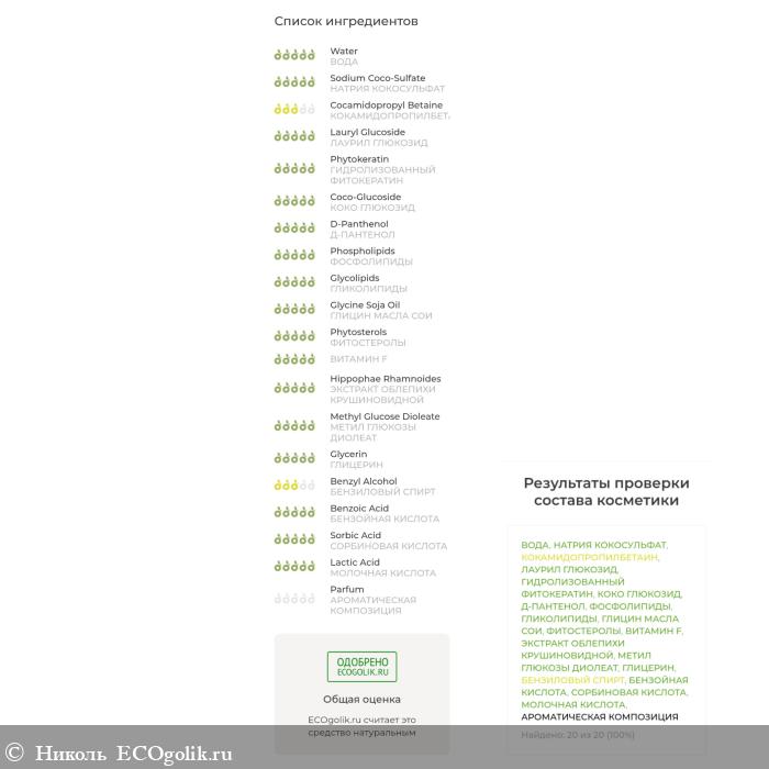 Состав богат на полезные компоненты, меня подкупил сразу же наличием гидролизованного фитокератина, д-пантенола, фосфолипидов, гликолипидов, глицином масла сои, фитостеролов, витамина F, экстракта облепихи.