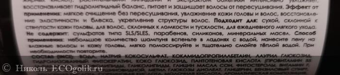 Эффект от применения: мягкое очищение без пересушивания, увлажнение кожи головы и волос, восстановление эластичности и блеска, укрепление структуры волос.