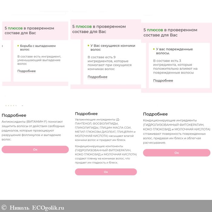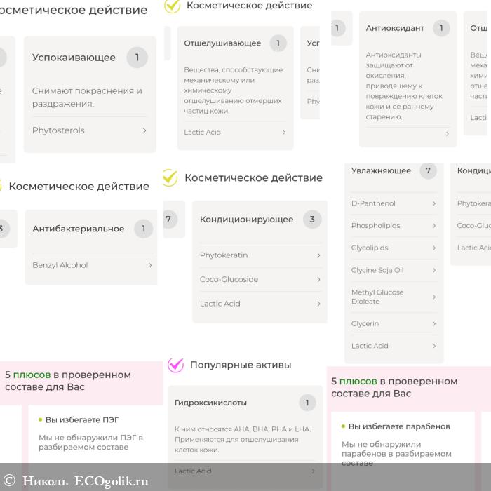 Подписка PLUS выделила мне множество плюсов, подчеркнув популярный актив, написала для каких целей используются некоторые компоненты, а так же произвела анализ ингредиентов по косметическому действию.