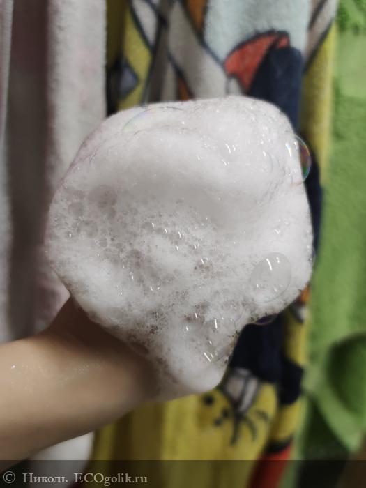- Хорошо пенится за счёт таких ПАВ, как: кокосульфат натрия, кокамидопропилбетаин, кокоглюкозид.