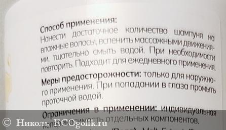 - Способ применения: Нанести достаточное количество шампуня на влажные волосы, вспенить массажными движениями, тщательно смыть водой. При необходимости повторить. Подходит для ежедневного применения.