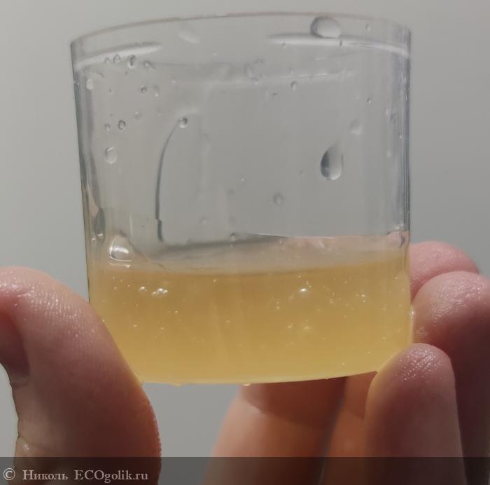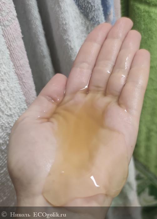 гелевую консистенцию. Шампунь не сильно густой, но и не слишком жидкий.