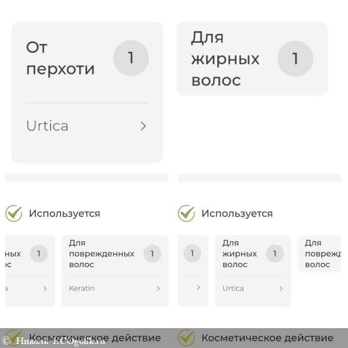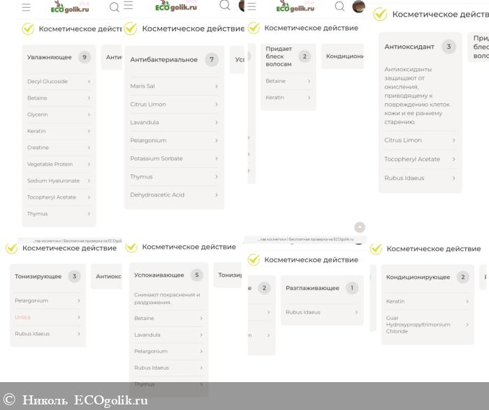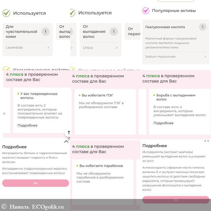 Сначало дано описание шампуня, в котором расписаны действия нескольких компонентов, входящих в его состав.