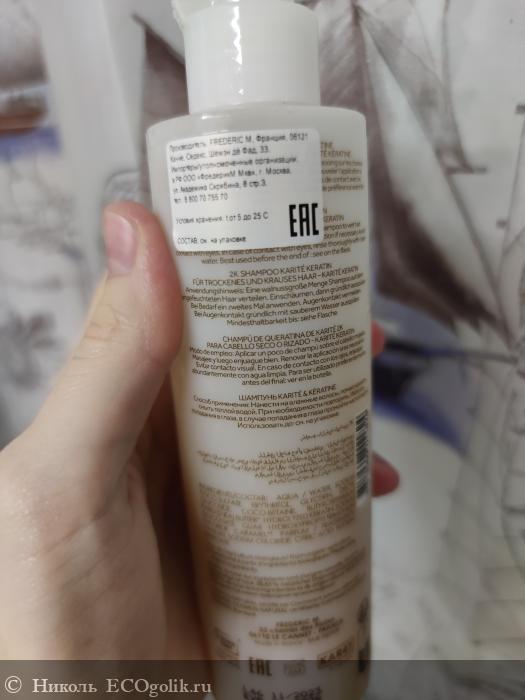 Вся информация про шампунь указана на обратной стороне флакончика. Тут и состав, и применение. В составчике: глицерин, гидролизованный кератин, эритритол, масло ши (карите), лимонная кислота.