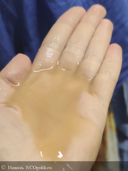У шампуня приятный, натуральный аромат карамели. А консистенция кремовая, средней густоты светло-коричневого цвета.