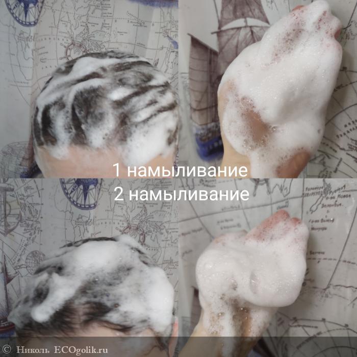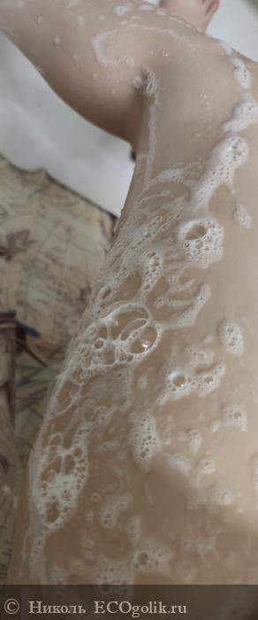 - Отлично пенится за счет таких ПАВ, как: кокосульфат натрия, кокамидопропилбетаин кокоглюкозид, децил глюкозид. Облачко пены получается белого цвета, оно лёгкое и воздушное. Даже с первого намыливания пены много.