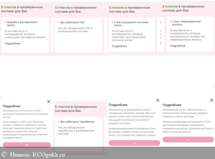 В описании шампуня подробно расписаны действия нескольких компонентов, которые входят в его состав.