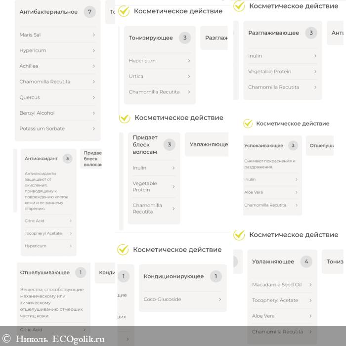 выделила ингредиенты по косметическому действию.