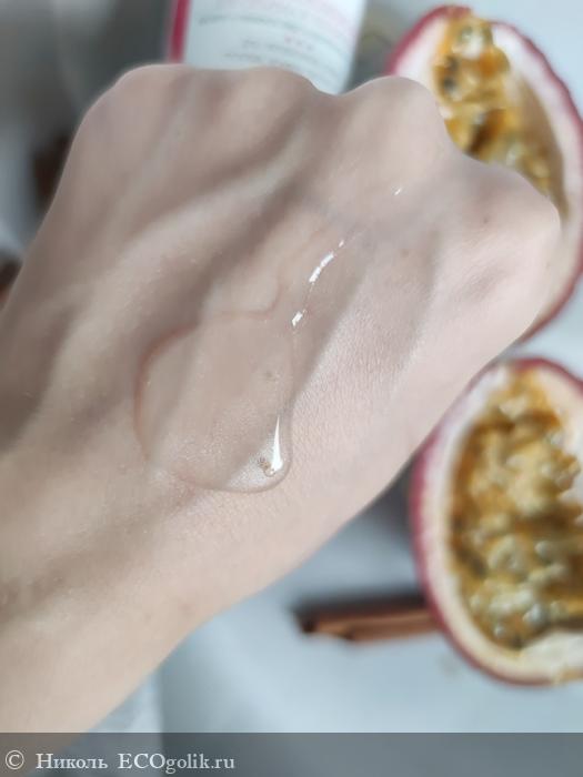 Консистенция у уходового продукта прозрачная, гелевая с лёгким перламутровым отливом, средней густоты.