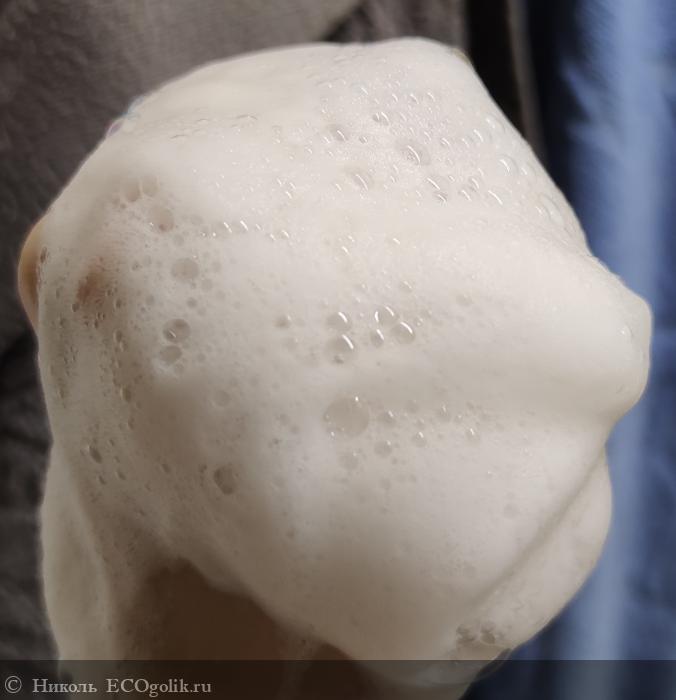- Хорошо и качественно, при этом бережно и мягко промывает. Образуется плотное облачко пены, пенки много получается.