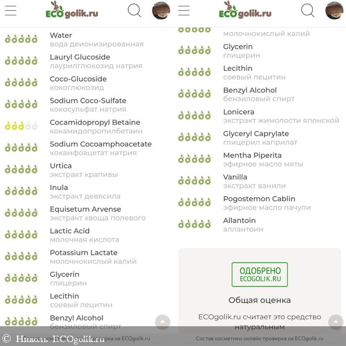 - Отлично пенится за счёт таких ПАВ: лаурилглюкозид натрия, кокоглюкозид натрия, кокосульфат натрия, кокамидопропилбетаин, кокамфоацетат натрия.