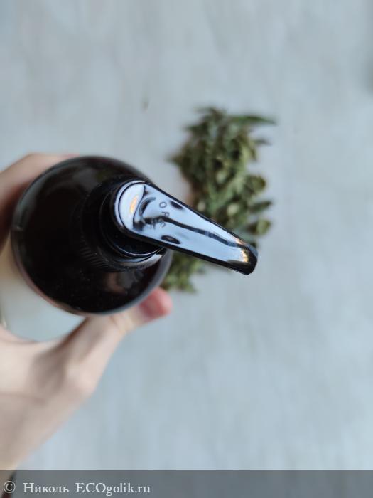 У шампуня густая гелевая консистенция светло-коричневого цвета, ближе к насыщенному янтарному. Он экономично расходуется. У него приятный, травяной, довольно стойкий аромат. Остаётся в течение нескольких часов после мытья на волосах и в ванне.