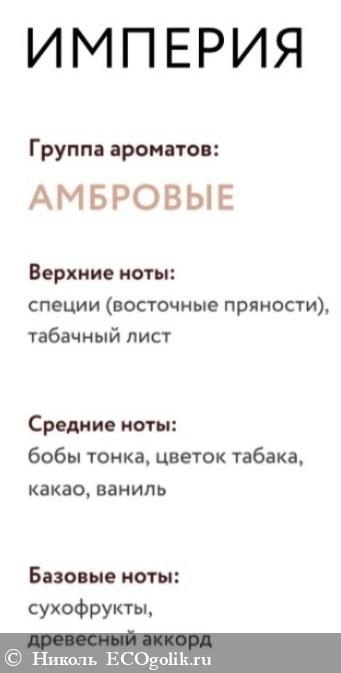 Аромат стойкий, сильный, относится к группе амбровых. Даже на следующий день в ванне пахнет этим шампунем и от волосиков приятный шлейф, если взять локоны и поднести к носу. Тут распишу, какие присутствуют нотки: верхние - специи (восточные пряности), табачный лист; средние - бобы тонка, цветок табака, какао, ваниль; базовые - сухофрукты и древесный аккорд. Я чувствую больше и чётко восточные пряности и древесный аккорд, вот что значит угадала с линейкой. То, что нужно, я люблю, тут есть. Ваниль и какао не ощущаю, но для меня это плюс даже, не очень из люблю. Потрясающая ароматерапия для меня, когда мою этим шампунем волосы.