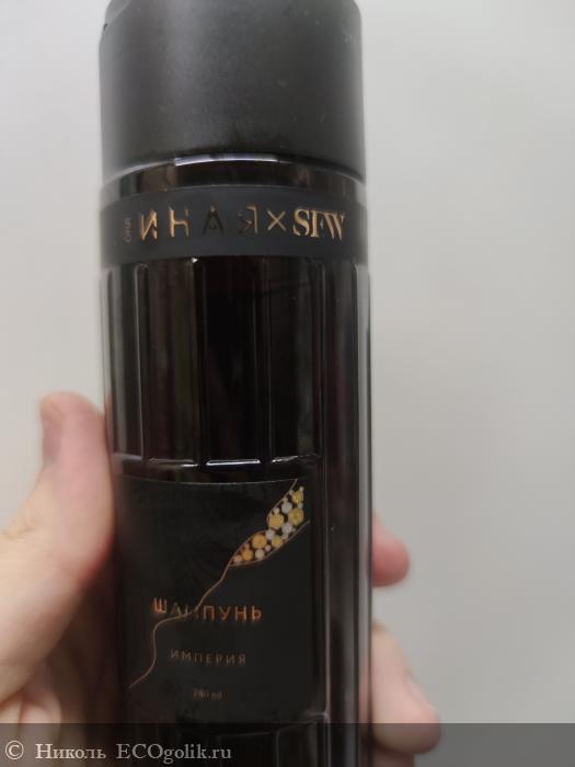 На лицевой стороне имеются красивые этикетки (влагоустойчивые наклейки) чёрного цвета и золотыми буквами написано из какой серии шампунь ОНА ИНАЯ × SFW ИМПЕРИЯ.