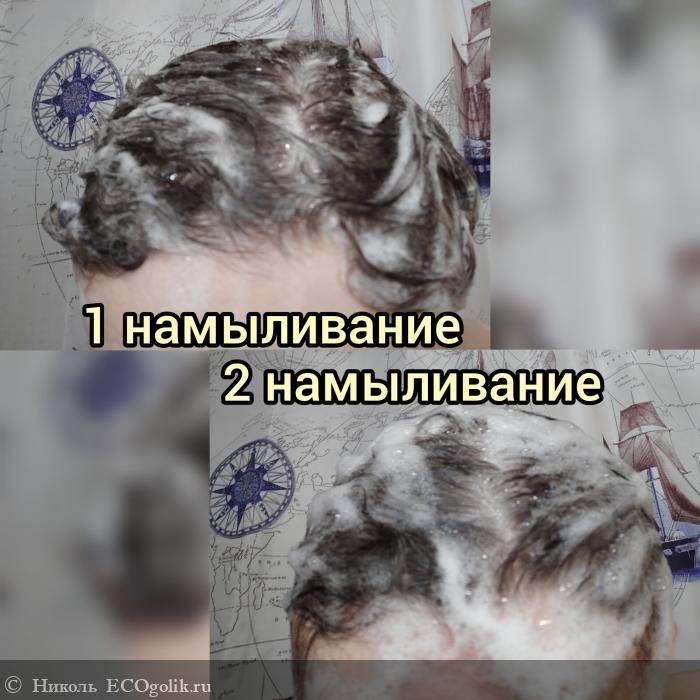 В способе применения сказано, что после вспенивания шампуня, смывать его нужно не сразу, а как выдержите 2-4 минуты.