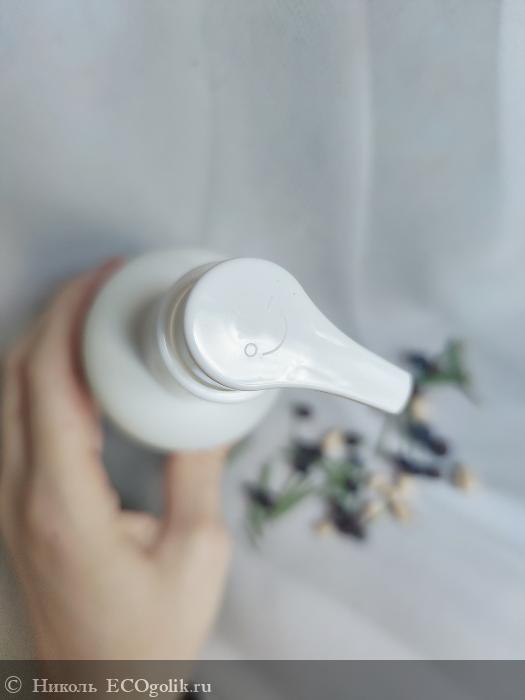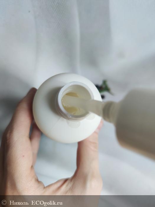 Флакончик оснащён удобным помповым дозатором высокого качества. С помощью него дозирование шампуня получается плавным, мягко выдаётся его небольшое количество средства без плевков. Уходовый продукт в отверстии дозатора не засыхает.