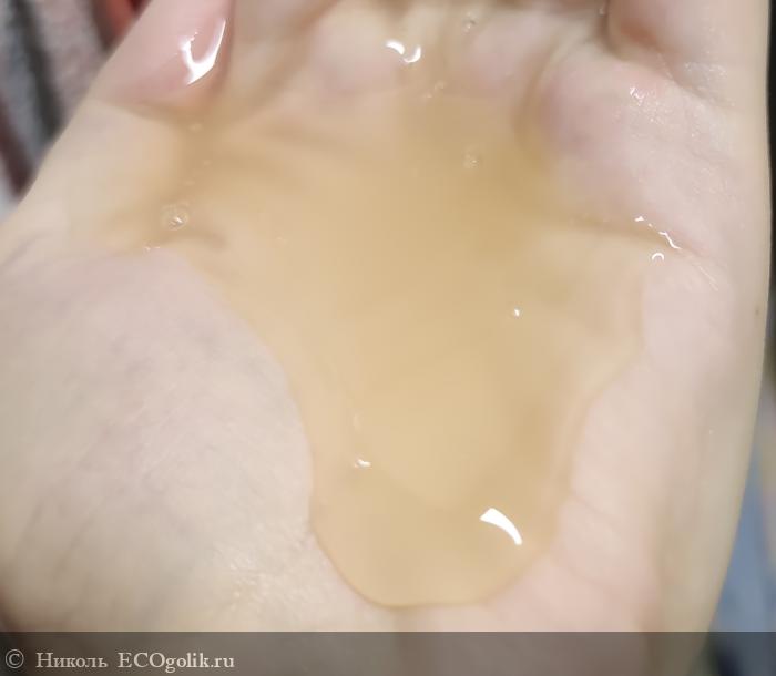 Шампунь не сильно текучий, светло-жёлтого цвета, расходуется экономично. Имеет pH -5,5. Он легко и быстро смывается с волос.
