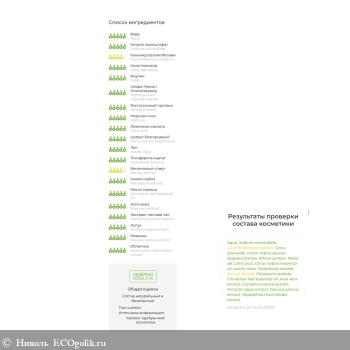 После указан классный состав. В нём нет силиконов, минерального масла, парабенов, искусственных красителей и консервантов, а так же синтетических ароматизаторов.