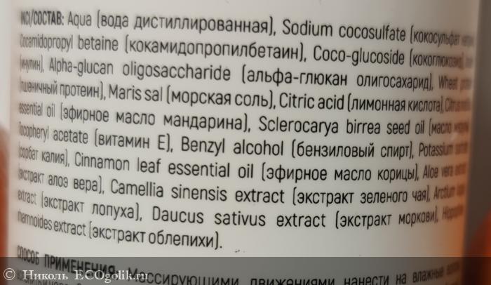 - Citrus nobilis essential oil (эфирное масло мандарина) - антиоксидант, обладает тонизирующим, освежающим, противовоспалительным, осветляющим действиями. Борется с перхотью и себореей, придает волосам блеск и сияние, придаёт аромат.