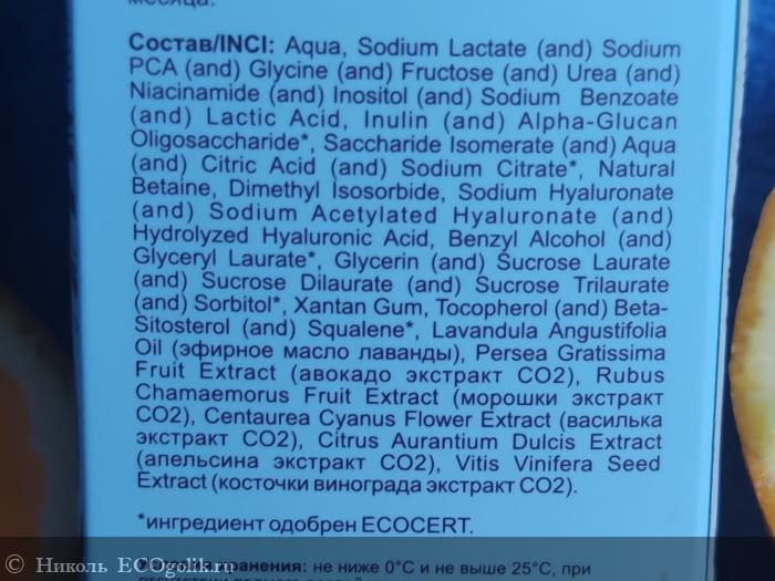 - Sodium Acetylated Hyaluronate обеспечивая ультраувлажнение снаружи и изнутри кожи, восстанавливает её гладкость и эластичность.
