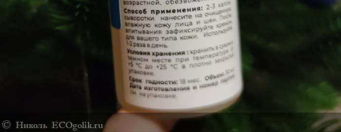Вся необходимая информация про эту сыворотку указана на влагоустойчивой наклейке. Информация грамотно структурирована и разделена на пункты.