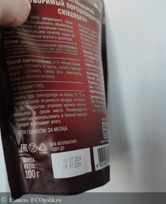 Qr-коды, которые переведут Вас на сайт бренда и на профиль в соц.сети, напечатаны так же на упаковочке цикория. Имеется подробная информация про изготовителя, дистрибьютора и их контактные данные, а так же написаны пищевая и энергетическая ценности.